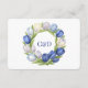 Carte D'accompagnement Elégante aquarelle Tulipe Mariage de couronne bleu