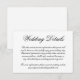Elégante carte de détails de mariage avec vos informations dans une belle calligraphie sur un arrière - plan blanc. Ces cartes de boîtier élégantes sont parfaites pour un mariage de cravate noir formel.