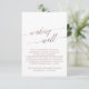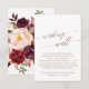 Cette élégante calligraphie or rose florale souhaitant bien carte d'enceinte est parfaite pour un mariage de automne. Le design présente une typographie romantique et fantaisiste de feuille d'or rose avec un magnifique bouquet de rose roux, de marsala et de fleurs bordeaux sur le fond. Personnalisez cette carte d'invitation avec vos noms, et un court poème de bienvenue. Remarque : Ce design ne présente pas de véritable feuille d'or rose. C'est un graphisme de haute qualité fait pour ressembler à du papier doré rose.