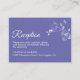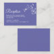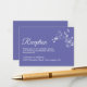 Cette carte de réception de mariage élégante et minimaliste présente en haut un dessin d'orchidées blanches délicates, sur un arrière - plan bleu perwinkle élégant. Modifiez facilement les champs de modèle pour ajouter vos informations de réception dans une police blanche simple et moderne. Pour plus de personnalisation ou des commandes personnalisées, n'hésitez pas à me contacter à acherryonthecake@hotmail.com (veuillez prévoir 1-2 jours ouvrables). Cette carte de boîtier de réception fait partie de la collection "Delicate Orchids - Periwinkle Purple mariage suite" avec de nombreux éléments de coordination pour créer une suite mariage unique.