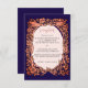 Mon stylo original dessiné à la main et mes illustrations d'encre encadrent vos informations mariages. Oiseaux, fleurs et papillons remplissent les branches feuillues d'un design romantique évocateur d'illustrations vintages. Le design est une couleur riche en cuivre ou or rose, l'arrière - plan et l'inverse de la carte sont bleu marine, et l'arrière - plan de texte est un très pâle blush en cuivre. Les modèles de texte et le menu "Modifier" vous permettent de customiser facilement toutes vos informations. Belle et élégante pour votre mariage à thème de couleur.
