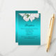 Une magnifique carte d'enceinte de réception aqua de luxe qui contient tous les détails dont vous avez besoin pour que vos invités mariages connaissent votre réception. Les détails peuvent être facilement customisés pour répondre à vos propres informations. Le design lui-même présente un beau bouquet de mariée blanc en haut de l'avant de la carte, avec une version plus petite à l'arrière. Ajoutez les détails de votre site mariage là aussi, si désiré.