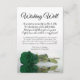 Cette belle carte mariage est une façon de demander à vos invités de l'argent ou de l'argent en guise de cadeaux. L'élégant design comprend un rose couleur vert émeraude qui se reflète dans l'eau avec des vagues et des ondulations. Le titre se lit "Wishing Well" avec un poème mignon : "Tandis que nous commençons notre nouvelle vie en tant que Mr. & Mme Nous avons déjà une maison pleine de plats Mais si vous voulez nous donner un cadeau Un cadeau de quelques espèces serait si agréable! Il y a de l'espace en bas pour une note et une signature courtes.