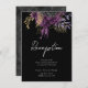 Cartes de réception de mariage floral violet et noir gothique. Feuilles de feuille d'or fausses. Surlignage de police de script avec police de nom serif facile à lire. Facile à ajuster pour vos propres besoins de mariage. Cartes d'enclos de mariage personnalisées.
