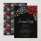 Cartes d'hébergement de mariage floral squelette noir rouge gothique. Feuilles de faux or. Police de caractères script mise en valeur avec une police de nom serif facile à lire. Facile à ajuster pour vos propres besoins de mariage. Cartes d'enveloppe de mariage personnalisées.