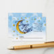 La carte de tombola de douche pour bébé contient un arrière - plan d'aquarelle bleu nuageux rêveur rempli d'étoiles brillantes de parties scintillant or et d'une lune d'ombre de parties scintillant or. Cette carte demande aux invités d'apporter un paquet de couches pour une chance de gagner un prix.