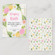Cette belle et élégante carte en tombola de couche présente des fleurs roses, jaunes et blanches à l'aquarelle avec feuillage sur un cadre géométrique doré. Le texte combine écriture manuscrite et polices serif pour un look élégant et moderne. Il est parfait pour un baby shower rustique de printemps ou d'été.