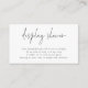 Étiquette cadeau élégante à l'écriture manuscrite au dos de l'encart de douche de mariage. Élégance simple en noir et blanc, avec « Display Shower » dans un style d'écriture manuscrite élégant. Personnalisez facilement le reste du texte avec vos propres détails. Les invités peuvent utiliser le dos pour écrire leur nom et attacher la carte à leur cadeau non emballé. Vous pouvez également modifier les couleurs du texte et de l'arrière-plan via l'option « Personnaliser davantage » si vous le souhaitez.
