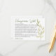 Envoyez les jeunes mariés avec amour et vœux de bonheur pour leur prochaine grande aventure ! Cette carte de vœux de lune de miel présente un design moderne et minimaliste avec des feuilles de eucalyptus vertes douces, parfait pour les mariages et les enterrements de vie de jeune fille sur le thème de la campagne, rustique ou de la verdure. Placez ces cartes à votre réception ou à votre fête de mariage pour que vos invités puissent partager leurs pensées gentilles, leurs conseils de voyage ou leurs doux conseils pour la lune de miel à venir. Un beau souvenir que le couple chérira longtemps après le jour du mariage.