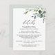 Conçue pour coordonner avec notre collection de mariages Boho Greenery, cette carte d'informations sur l'invité personnalisable, dispose d'un feuille de verdure aquarelle avec texte calligraphique, jumelée à un serif élégant et une police sans caractère moderne en noir. Éléments correspondants disponibles.