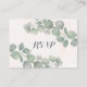 Améliorez votre papeterie mariage avec notre carte RSVP enchanteresse et rustique. Doté d'oeuvres originales de feuillage d'eucalyptus dans des tons apaisants de vert sauge, sur fond d'aquarelle orange douce. Customisez-le avec vos détails pour une touche unique et personnelle.