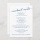 Cette simple carte d'invitation de mariage moderne et minimaliste comprend le programme des événements du week-end et les informations sur les chambres d'hôtel réservées, ainsi qu'un code QR au dos pour votre site web. Personnalisez facilement votre texte ou supprimez tout texte superflu dont vous n'avez pas besoin. Consultez ma boutique pour plus d'options de cartes de réponse RSVP. Caractérisé par une police de caractères cursive bleu marine simple et élégante. Suite complète disponible comprenant les "Save the Dates", les cartes RSVP, les cartes d'insertion, les menus, les programmes, les cartes de table, les notes de remerciement. Conçue et fabriquée spécialement pour vous ici aux États-Unis. Votre achat soutient des emplois ici aux États-Unis, et Zazzle offre une garantie de satisfaction à 100 %. Achetez en toute confiance ! Œuvre d'art par Coastal Map Designs