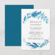 Cartes élégantes et élégantes d'enceinte de mariage avec un spray de beau feuillage dans les tons indigo et bleu turquoise entourant vos détails mariages tels que les chambres d'hôtel, le site Web mariage, les directions, ou d'autres informations importantes. Conçu pour coordonner avec notre collection de mariages Feuille Indigo.
