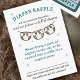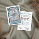 Cette carte de tombola à tarot dessinée à la main présente des illustrations originales dans un style de carte tarot, conçues pour coordonner avec notre suite d'invitation au baby shower tarot. L'avant présente une pile de paquets de couches avec un lapin farci sucré et une bannière de guirlandes de couches, le tout illustré dans un schéma de carte de tarot fantaisiste. Le dos comprend des instructions claires invitant les invités à apporter un paquet de couches de toute taille pour entrer dans un tirage de prix au baby shower. Une combinaison parfaite pour les invitations célestes à la douche pour bébé, les invitations magiques à la douche pour bébé, et d'autres invitations tarot dans cette collection. Cette carte de détails de baby shower facilite l'inclusion d'une demande de tombola de couche tout en ajoutant charme et cohérence à votre thème d'événement.