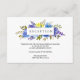 Conçu pour se coordonner avec notre collection de mariage Fleurs bleues et jaunes, cette élégante carte d'encart de réception botanique présente un cadre de fleurs peintes à l'aquarelle, de glycine et de jasmin jaune dans des tons élégants de jaune, de bleu et de lavande, surmontant le texte de votre message souhaité.