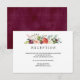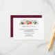 Conçue pour se coordonner avec notre collection de mariage Country Bloom, cette carte de clôture de réception botanique élégante présente un cadre de fleurs peintes à l'aquarelle burgundy et rose, des pivoines et des roses surmontant le texte de votre message souhaité.
