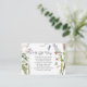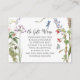 Comportant un design moderne élégant et vintage avec des fleurs sauvages légères et aériennes, un feuillage vert, une libellule, un papillon et des abeilles. Il s'agit d'une carte incluse pour informer vos invités qu'il n'est pas nécessaire d'emballer leurs cadeaux car il s'agit d'une fête de douche de présentation.
