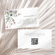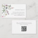 Ces cartes de site web mariages comprennent un bouquet de fleurs sauvages illustrés, colorés, rose, orange, violet et blanc et de feuilles verts sur un arrière - plan blanc. Il y a un code QR scannable à l'arrière pour que les clients puissent scanner et aller directement sur votre site Web. Un design simple, à la fois boho et élégant.