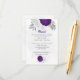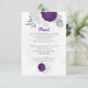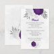 Fleurs royales romantiques violettes & blanches avec mariage botanique feuille argent détails cartes d'enceinte. Les détails de la parties scintillant sont simulés.