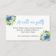 Cette belle et élégante carte de don caritatif comprend des fleurs bleu bébé aquarelle et bleu marine avec feuillage. Le texte combine écriture manuscrite et polices serif pour un look élégant et moderne. Il est parfait pour une fête d'anniversaire de printemps ou d'été, une douche nuptiale ou un baby shower.