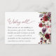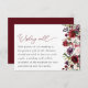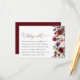 Complétez votre suite de papeterie mariage avec cette carte de voeux élégante. Le design est composé de fleurs d'aquarelle bordeaux, rose et violet et de verdure sur l'arrière - plan blanc.
