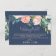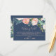 Ce mariage bleu fleur de pivoine romantique qui souhaite bonne carte est parfait pour un mariage élégant. Le design floral présente des fleurs d'aquarelle rose pâle, pêche et blanche en cascade sur un arrière - plan bleu marine. Personnalisez cette carte d'invitation avec vos noms, et un court poème de bienvenue.