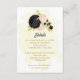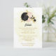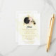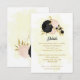 Carton d'invitation de mariage avec fleurs roses et noires romantiques et feuilles dorées détails botaniques