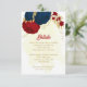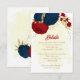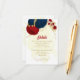 Carte D'accompagnement fleurs rouges et bleu marine or feuille mariage en