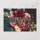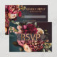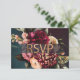 Carte de réponse florale sombre et lunaires, rose rouge audacieux et or rose.