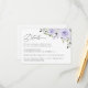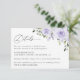 Complétez votre papeterie mariage avec cette carte de détails élégante. Le design présente des fleurs d'aquarelle violette et de la verdure sur l'arrière - plan blanc.