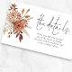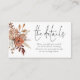 Rustic Terracotta Florals QR Code Détails du Mariage. De belles fleurs automnales sont à gauche avec un élégant script set pour l'en-tête. Ajoutez votre code QR menant à votre site Web mariage à l'arrière pour permettre à vos invités de scanner et de visualiser tous les détails tels que les directions et les informations d'hébergement.