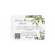 Cette élégante carte de boîtier minimaliste avec code qr sur votre site mariage vous aidera à demander un cadeau en argent pour votre fonds de maison éternelle au lieu de cadeaux traditionnels. La carte d'enceinte présente de magnifiques eucalyptus aquarelle, d'autres verdure, des plantes et du feuillage dans différents tons et tons de vert. Calligraphie de script élégante pour la typographie de carte de boîtier et police serif simple, facile à lire pour le site mariage, le nom du marié et du marié.