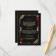 Unique Casino Royale et Great Gatsby conception de carte à thème. Il présente un style art déco vintage, un cadre rompu de Roaring des années 1920 avec fausse feuille d'or Fleur-de-lis, coeurs rouges, Q et K sur deux coins (simulant des cartes à jouer), sur arrière - plan motif Art déco noir or. Utilisez l'outil Personnaliser pour ajouter vos informations. Pour plus d'informations, visitez s'il vous plaît, ma Collection de Casino Gatsby.