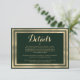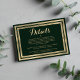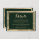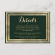 Géométrique style moderne forêt vert et or élégant mariage détails carte invitation. Cette simple invitation au vert foncé et à l'or est parfaite pour tout événement ou occasion élégant et sophistiqué. Ce design exquis et éblouissant est parfait pour un couple ou un individu branché et élégant. Customisez ce design avec votre propre message et des informations personnalisées. Tous les dessins sont imprimés.