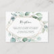 Cette carte d'enceinte de réception de mariage est ornée d'eucalyptus à l'aquarelle peinte et de feuilles verts botaniques avec un cadre géométrique or.