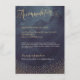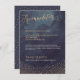 Glamor lettrage à main en or design de calligraphie et points d'or confetti sur bleu marine sombre nuit aquarelle arrière - plan, effet de parties scintillant en or métallique brillant, moderne, chic, propre et élégant, parfait pour mariage vintage ou mariage d'hiver en soirée. Customisez vos propres cartes d'hébergement pour votre faire-part de mariage. Voir toutes les pièces correspondantes dans cette collection de calligraphie de parties scintillant dorée Glam night ci-dessous.