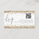 Glam QR Code Gold Parties scintillant Wedding RSVP boîtier permettant à vos invités de répondre facilement en scannant votre code QR menant à votre site mariage. Une taille MINI à joindre à vos invitations. RSVP est dans un script de style manuscrit et le reste du texte se personnalise facilement à vous avec des bordures de fausse parties scintillant en or. Ajoutez votre code QR à la page de réponse de votre site web mariage afin que vos invités puissent RSVP et voir tous les détails sans avoir besoin d'une carte RSVP séparée et de cartes de détails. Votre code QR sera généré automatiquement pour mettre à jour l'exemple de code dans la conception, lorsque vous changez simplement l'exemple d'URL dans le modèle avec votre propre URL de site mariage.