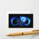 Luminous infinity symbol with glowing, beautiful, lushly blooming rose made of blue flames on black background.