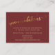 Offrez à vos invités des cartes pratiques pour les aider à se souvenir de vos arrangements d'hébergement mariage et d'autres détails avec cette carte moderne et festive. Une superposition de texte frappante sur laquelle on peut lire "hébergement" a été conçue à l'aide d'une police manuscrite moderne ornée de coeurs et superposée d'un faux effet de feuille d'or. Utilisez les champs modèles pour customiser ces cartes de boîtier avec vos données personnelles. L'arrière - plan est un rouge bordeaux modifiable que vous pouvez changer à n'importe quelle autre couleur que vous préférez. N'hésitez pas à contacter si vous avez des demandes spéciales. // 80 //