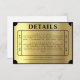 Carte de détails du mariage du billet d'or noir et or. Personnalisez-le avec les détails de votre événement.