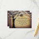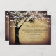 Cartes d'accompagnement pour réception de mariage avec silhouette d'arbre en chêne sculpté de style rustique campagnard avec des guirlandes lumineuses suspendues dans les arbres et un fond de papier parchemin antique rustique. Ces cartes de réception sont parfaites pour un mariage rustique à la campagne.