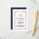 Offrez à vos invités tous les détails de votre hébergement de mariage ou d'autres informations pertinentes avec cette élégante carte incluse avec un script moderne, un texte bleu marine comprenant un palmier doré artistique et un cadre en cuivre rose métallisé sur le devant de la carte. Un fond bleu marine coordonné est au dos.