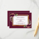 Carte D'accompagnement hébergement mariage boho bordeaux fleuri