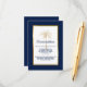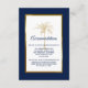 Offrez à vos invités tous vos hébergements mariages ou autres détails pertinents avec cette élégante carte d'enceinte avec script moderne, texte bleu marine incluant un palmier doré artistique et cadre or métallique sur le devant de la carte. Un arrière - plan bleu marine est à l'avant et à l'arrière.