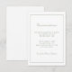 La carte d'information jointe au faire-part de mariage élégant présente un design minimaliste avec une bordure à encadrement simple de couleur vert sauge sur fond blanc croquant. La formulation traditionnelle offre une sophistication intemporelle et moderne. Personnalisez ce design de mariage avec vos détails en lettrage et écriture vert sauge magnifiques. Le dos de la carte est uni et blanc. Pour de meilleurs résultats, ne mettez pas d'espaces et utilisez des lettres majuscules comme indiqué dans l'exemple. Envoyez un message via la fonction de message Zazzle ou écrivez à invitationsuites@gmail.com pour toute question ou demande de couleur personnalisée.