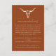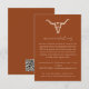 Carte d'invitation simple de réception bohème western avec crâne de vache - Un design simple et minimaliste présente un crâne de vache bohème western sur un fond orange désert. Tout le texte et les couleurs sont entièrement modifiables. Au dos de la carte d'invitation d'hébergement figure un code QR pour votre site web de mariage.