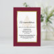 Offrez à vos invités tous vos hébergements mariages ou autres détails pertinents avec cette carte élégante de boîtier avec script moderne, texte noir incluant un arbre de Noël étoilé et cadre en or métallique sur le devant. Parfait pour un mariage de Noël ou d'hiver. Un arrière - plan bordeaux est à l'avant et à l'arrière de la carte.
