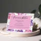 Ajoutez une touche douce et élégante à votre papeterie mariage avec cette carte de logement manuscrite violet rose. Conçue pour correspondre à un thème mariage romantique ou moderne, cette carte vous garantit tous les détails dont vos invités ont besoin pour un séjour confortable. Un arrière - plan rose violet avec des polices délicates et des accents floral ou doré en option pour un look raffiné. Inclure des informations sur l'hôtel, les détails du bloc de chambre, les itinéraires ou des conseils de voyage utiles pour vos invités. Convient aux mariages, aux fêtes de destination ou autres événements spéciaux nécessitant des arrangements de voyage. Cette carte d'hébergement violet rose aide non seulement vos invités à planifier leur séjour, mais améliore également votre suite de faire-part de mariage avec son design élégant et cohésif. C’est le parfait mélange de style et de fonctionnalité.