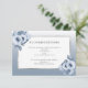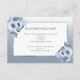 Une carte élégante d'hébergement de mariage. Un cadre en faux argent et blanc avec des roses aquarellés dans les tons bleus. Un dégradé bleu foncé et chic, arrière - plan sombre. Modèles pour vos détails d'hébergement mariage, texte gris foncé. Dos : arrière - plan bleu poussiéreux. Parfait pour un mariage d'hiver ou de printemps.