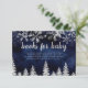 Bébé il fait froid dehors ! Célébrez votre bébé avec cette parties scintillant argentée scintille des livres de neige et de flocons de neige pour le baby shower, avec la forêt de pins brillants argentés sur un élégant arrière - plan d'aquarelle bleu marine d'hiver.